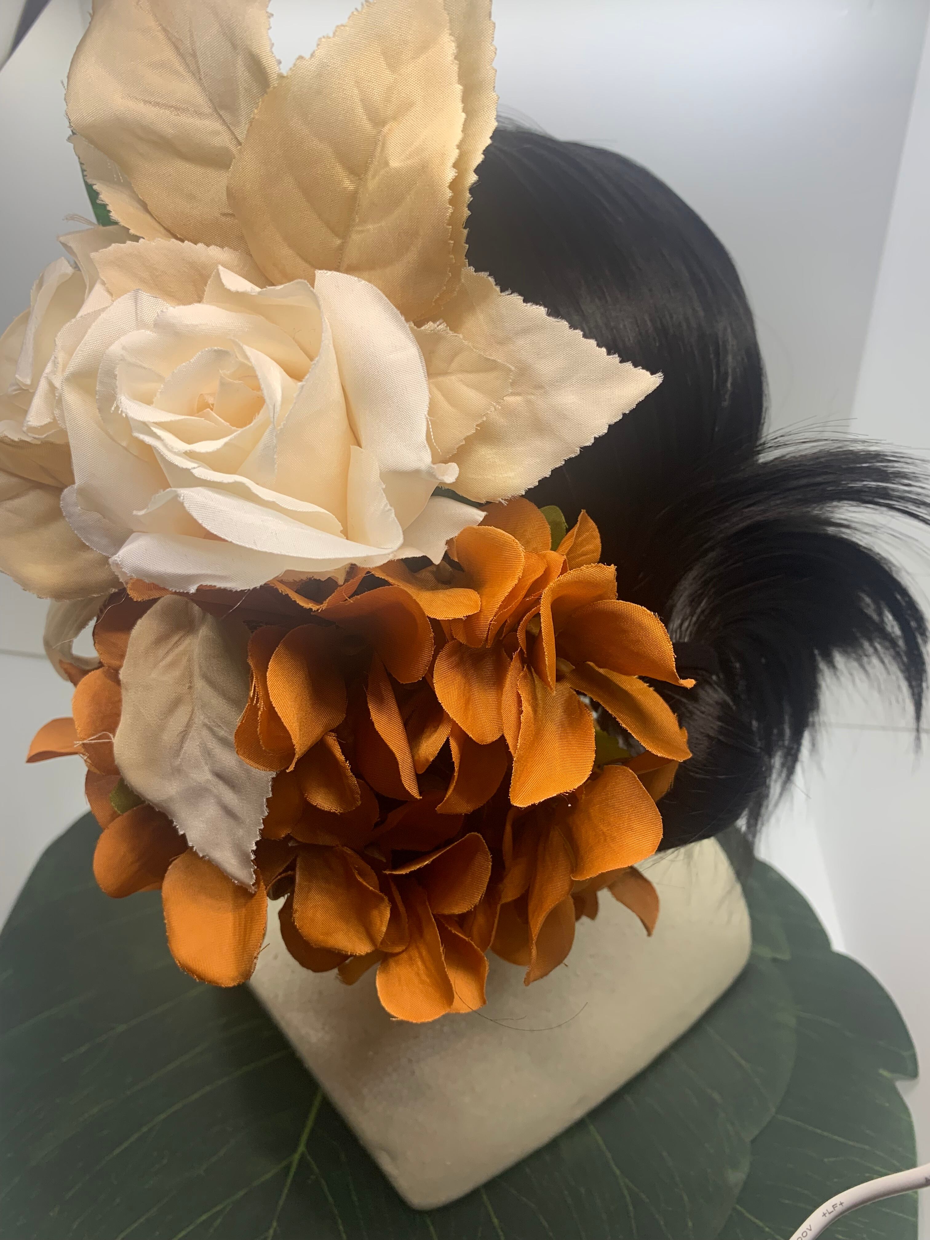 情熱的で存在感抜群のバラと紫陽花の組み合わせの髪飾りです。